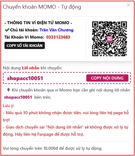 1.2: Nạp Tiền Từ Ví MoMo Vào Shop Acc Tốc Chiến Giá Rẻ ( ShopAccTocChien.Com ) Tự Động: