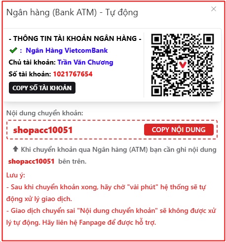 1.1: Nạp Tiền Từ Ngân Hàng Vào Shop Acc Tốc Chiến Giá Rẻ ( ShopAccTocChien.Com ) Tự Động: