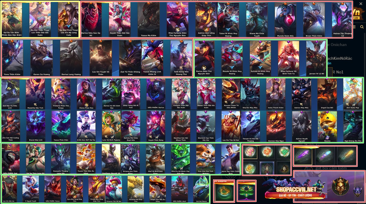 2 SKIN VÀNG - 6 SKIN ĐỎ - 43 SKIN TÍM