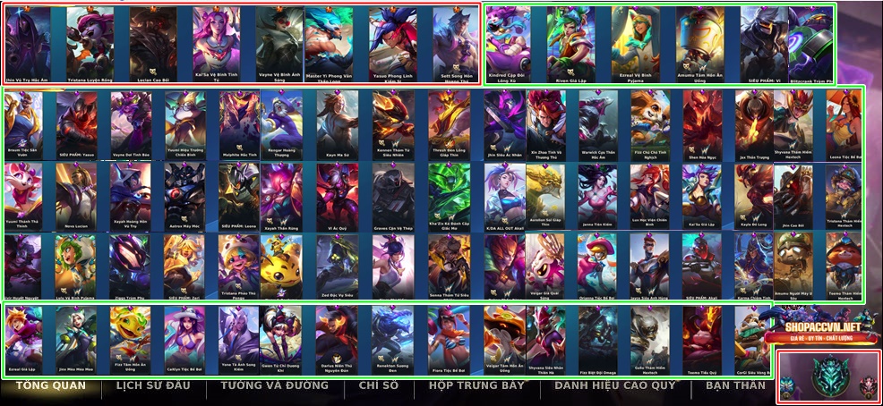 ✅FULL TƯỚNG: 1 SKIN VÀNG - 10 SKIN ĐỎ - 73 SKIN TÍM