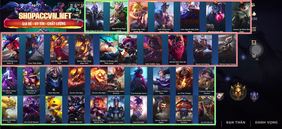 ✅FULL TƯỚNG: 1 SKIN VÀNG - 7 SKIN TÍM - 28 SKIN TÍM ✅DƯ 83K TINH HOA LAM