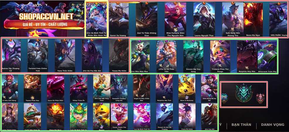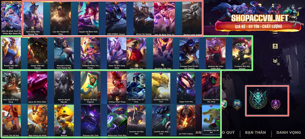 ✅SIÊU PHẨM: FULL TƯỚNG - 8 SKIN VÀNG - 58 SKIN ĐỎ - 220 SKIN TÍM ✅DƯ 220K TINH HOA LAM ✅ YASUO MẶC ẢNH, VIEGO MẶC ẢNH, VARUS MẶC ẢNH ✅ COMBO SKIN: HỒNG PHA LÊ, KHÍ TƯỢNG TINH LINH, KHÚC HUY HOÀNG, BÙNG NỔ ĐA SẮC...