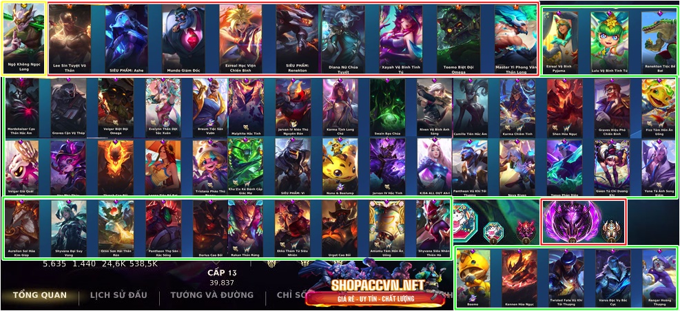 ✅1 SKIN VÀNG - 8 SKIN ĐỎ - 29 SKIN TÍM ✅ KHUNG THÁCH ĐẤU