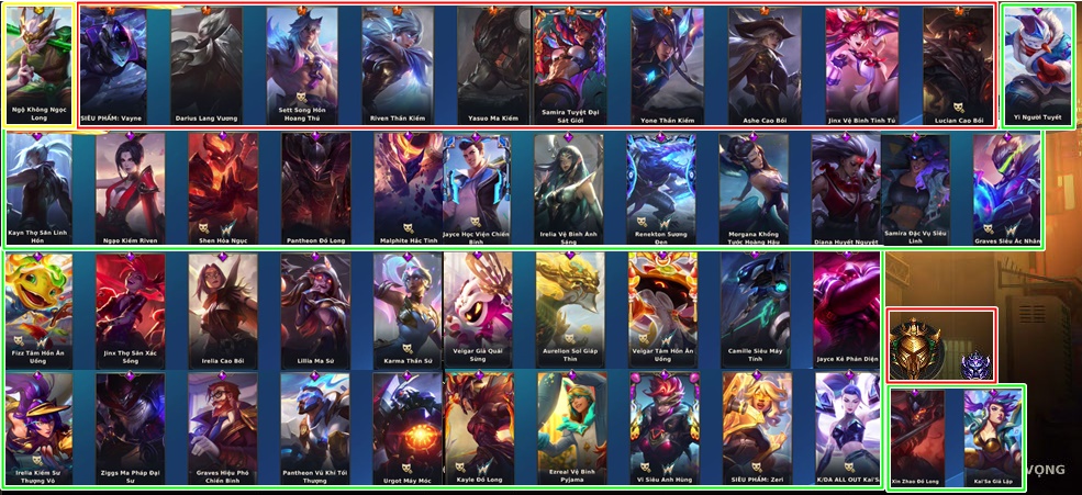 1 SKIN VÀNG - 10 SKIN ĐỎ - 35 SKIN TÍM