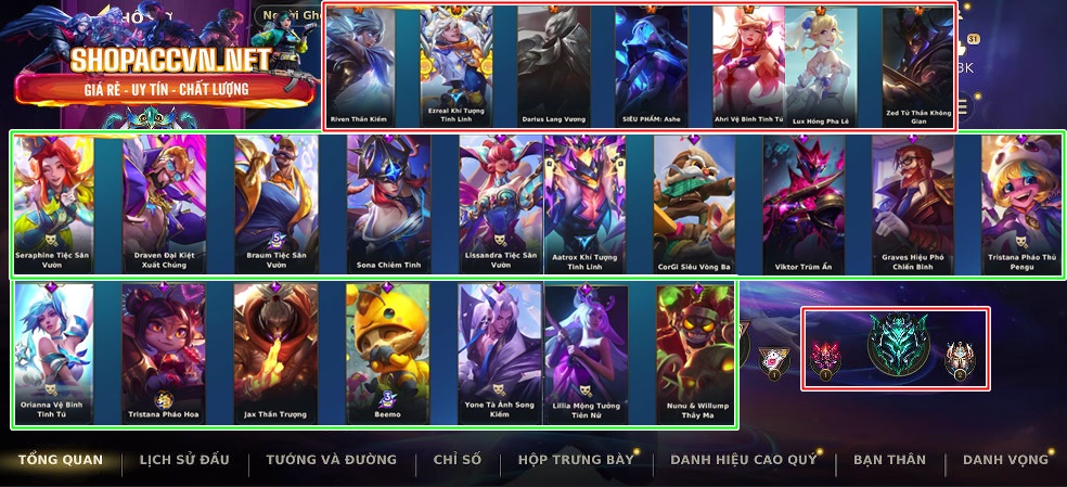 ✅SIÊU PHẨM: FULL TƯỚNG - 3 SKIN VÀNG - 33 SKIN ĐỎ - 149 SKIN TÍM ✅1 CỜ HIỆU ✅DƯ 46K TINH HOA LAM