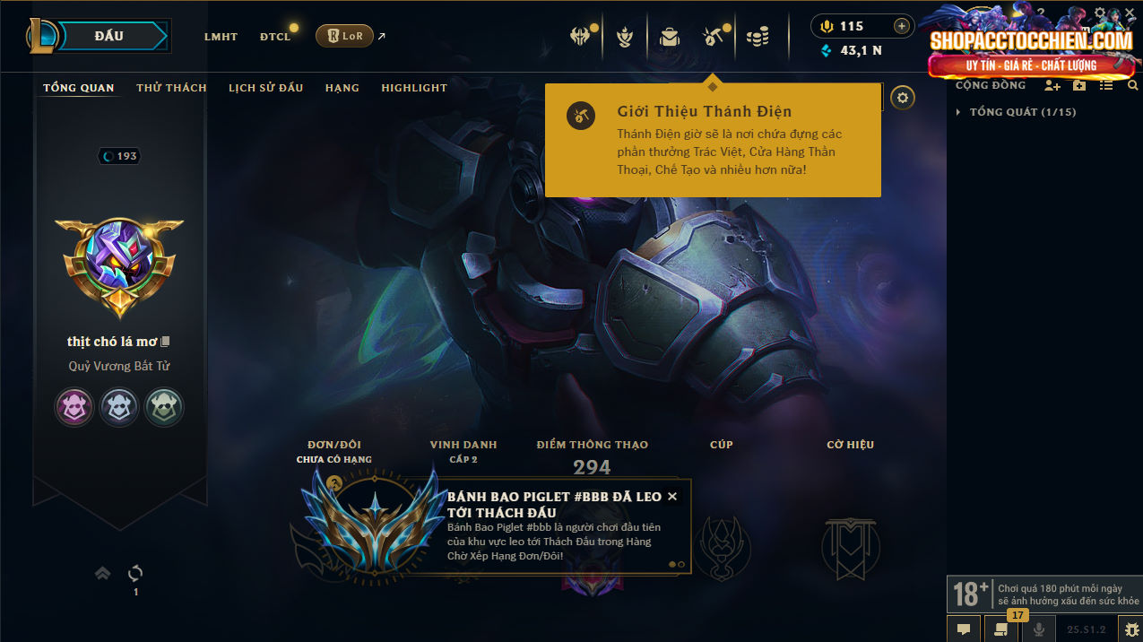 Chào mừng các bạn đến với Shop Acc Liên Minh Huyền Thoại Giá Rẻ chuyên Mua Bán Acc Liên Minh Uy Tín Giá rẻ nhất hiện nay. Shop sở hữu Acc Liên Minh Huyền Thoại víp nhất, các bạn có thể thử vận may liên minh nhận Nick Liên Minh, Nick LOL Giá Rẻ, Mua Nick LOL Uy Tín Số 1 Tại Việt Nam.