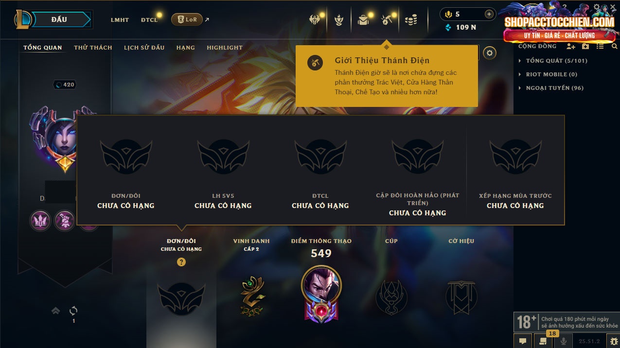 - 100% - Acc Liên Minh Huyền Thoại - Trắng Thông Tin
