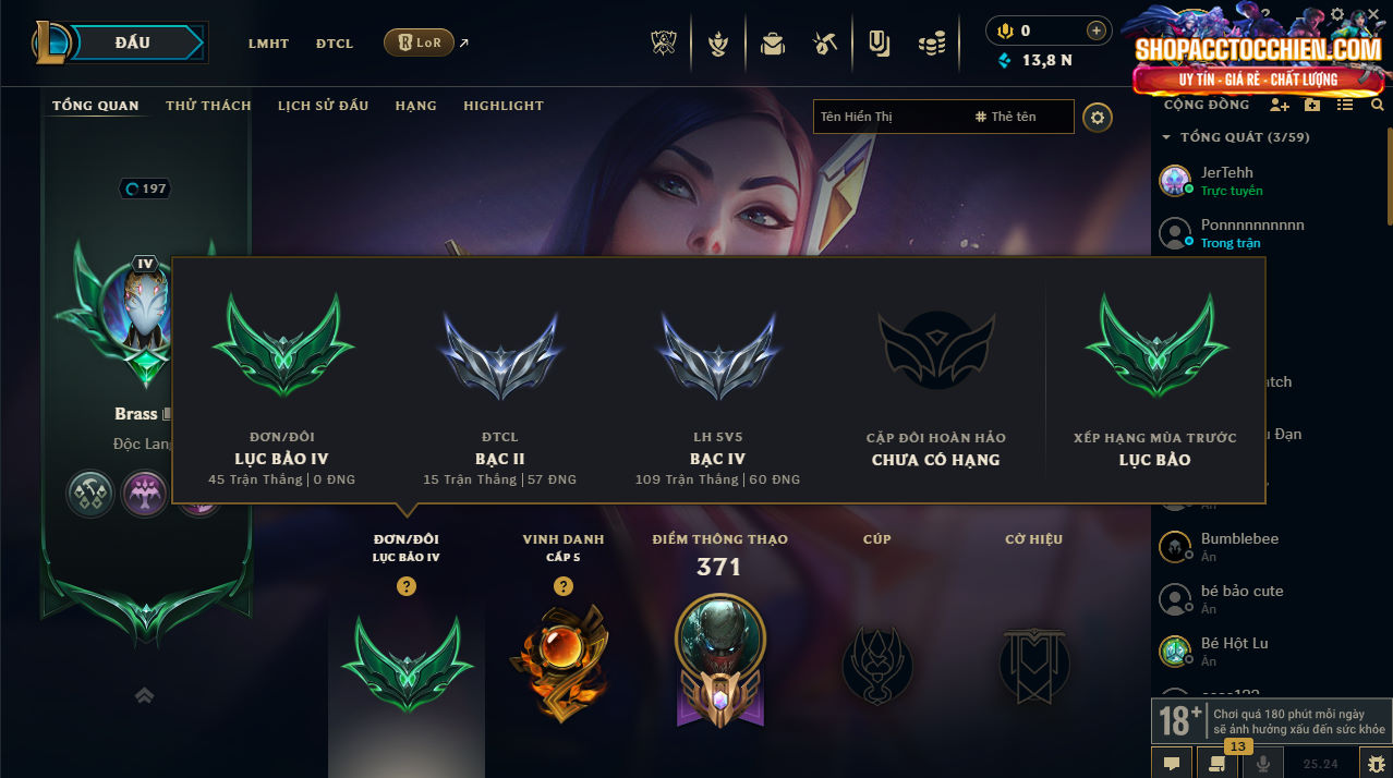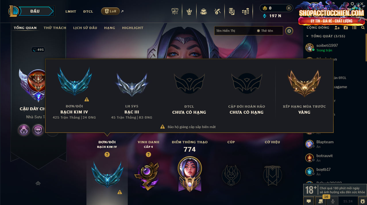 Hơn nữa, Shop không chỉ mua bán nick liên minh huyền thoại mà còn cho thuê nick liên minh huyền thoại uy tín từ rank cấp trung đến rank cấp cao nhất, tuỳ vào nhu cầu giải trí của anh em. Với thời gian giao dịch nhanh chóng chỉ chưa đầy 1p30 là sở hữu ngay tài khoản game ưng ý để anh em quay lại game trải nghiệm rất tiết kiệm thời gian và kinh tế.